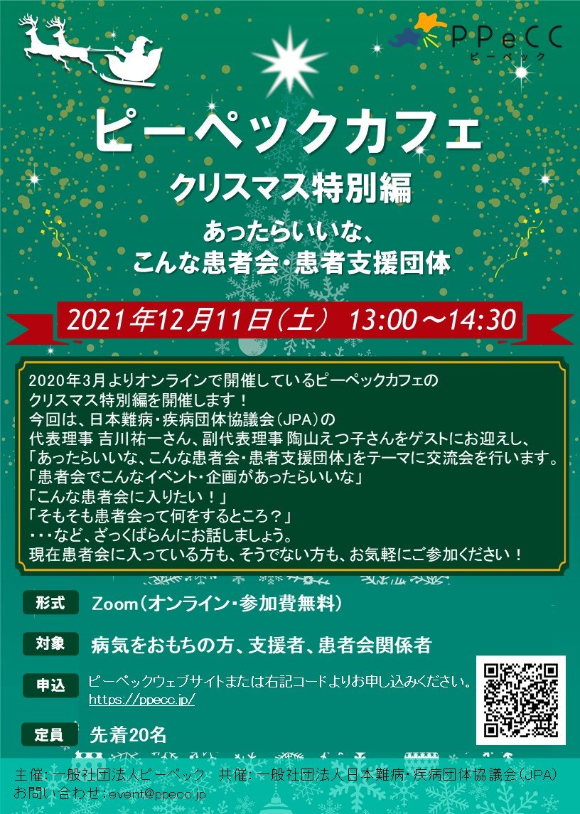 2020年3月よりオンラインで開催しているピーペックカフェのクリスマス特別編を開催します!