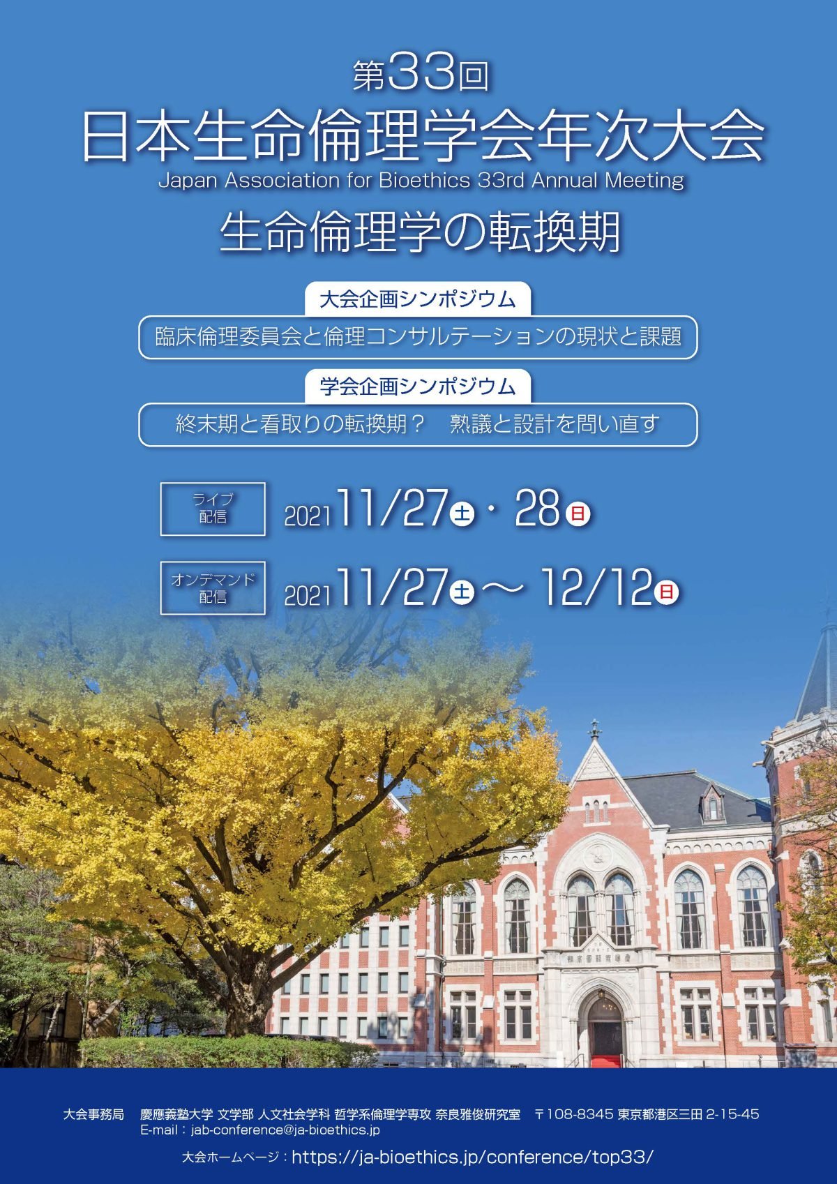 2021年11月28日、「第33回日本生命倫理学会年次大会」代表理事 宿野部が病気をもつ立場から登壇しました。