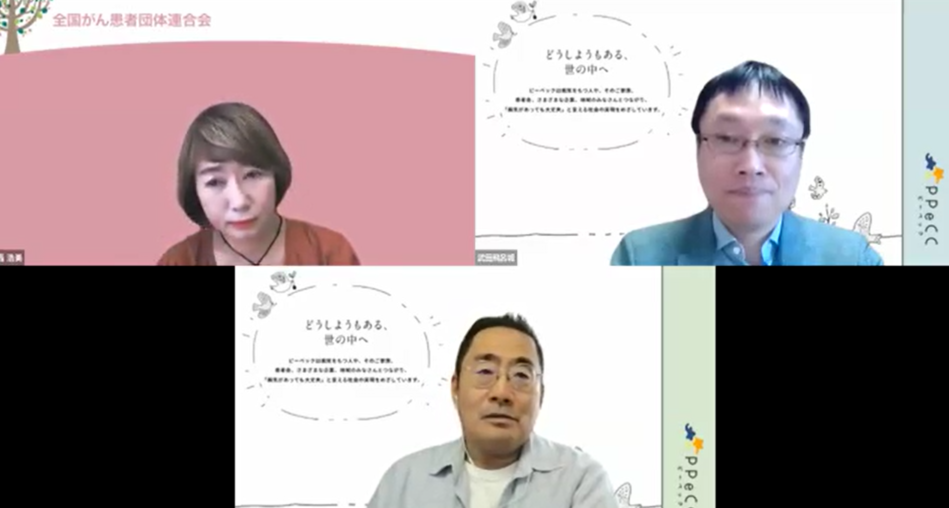 講演を受けての質疑応答では、認定NPO法人 希望の会代表の轟浩美氏がモデレーターを務め、ピーペック代表理事の宿野部武志を交えて意見交換が行われました。