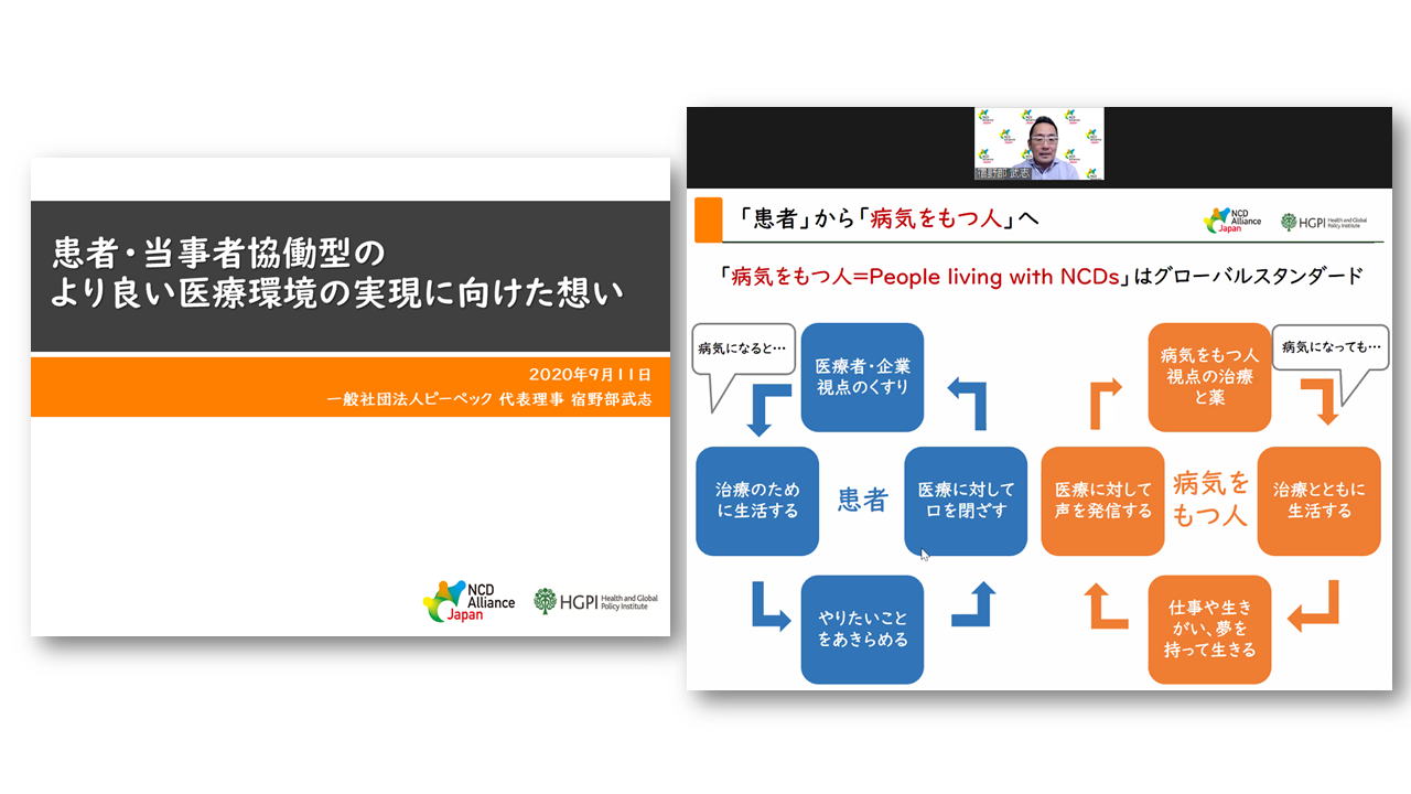 9月11日にはメディアブリーフィングを実施し、代表の宿野部武志より「患者・当事者協働型のより良い医療環境の実現に向けた想い」と題し、
