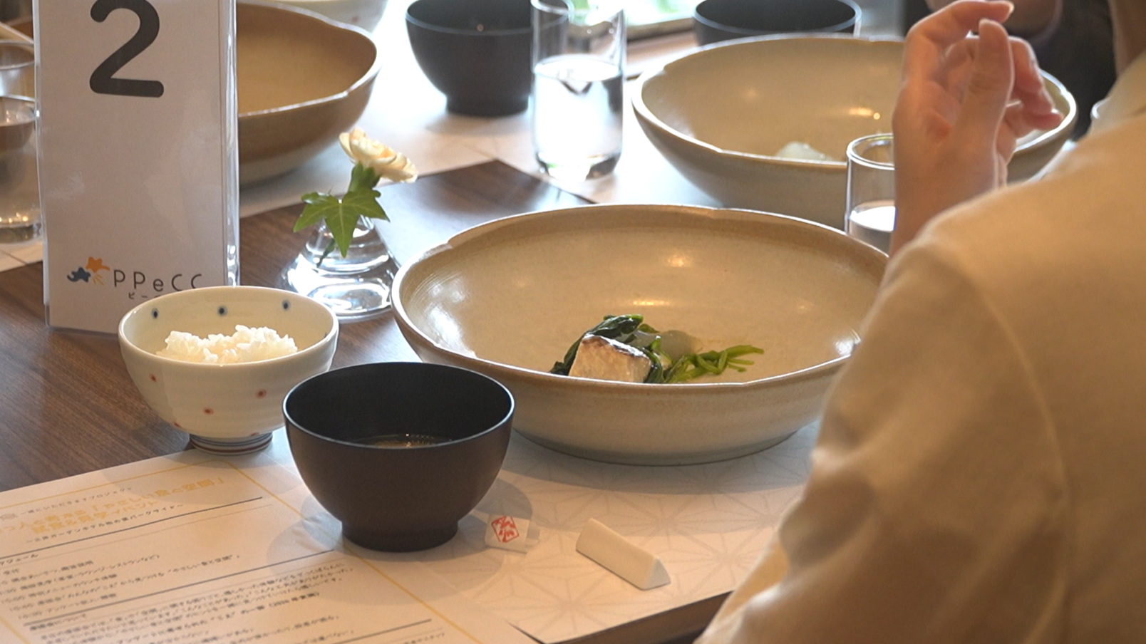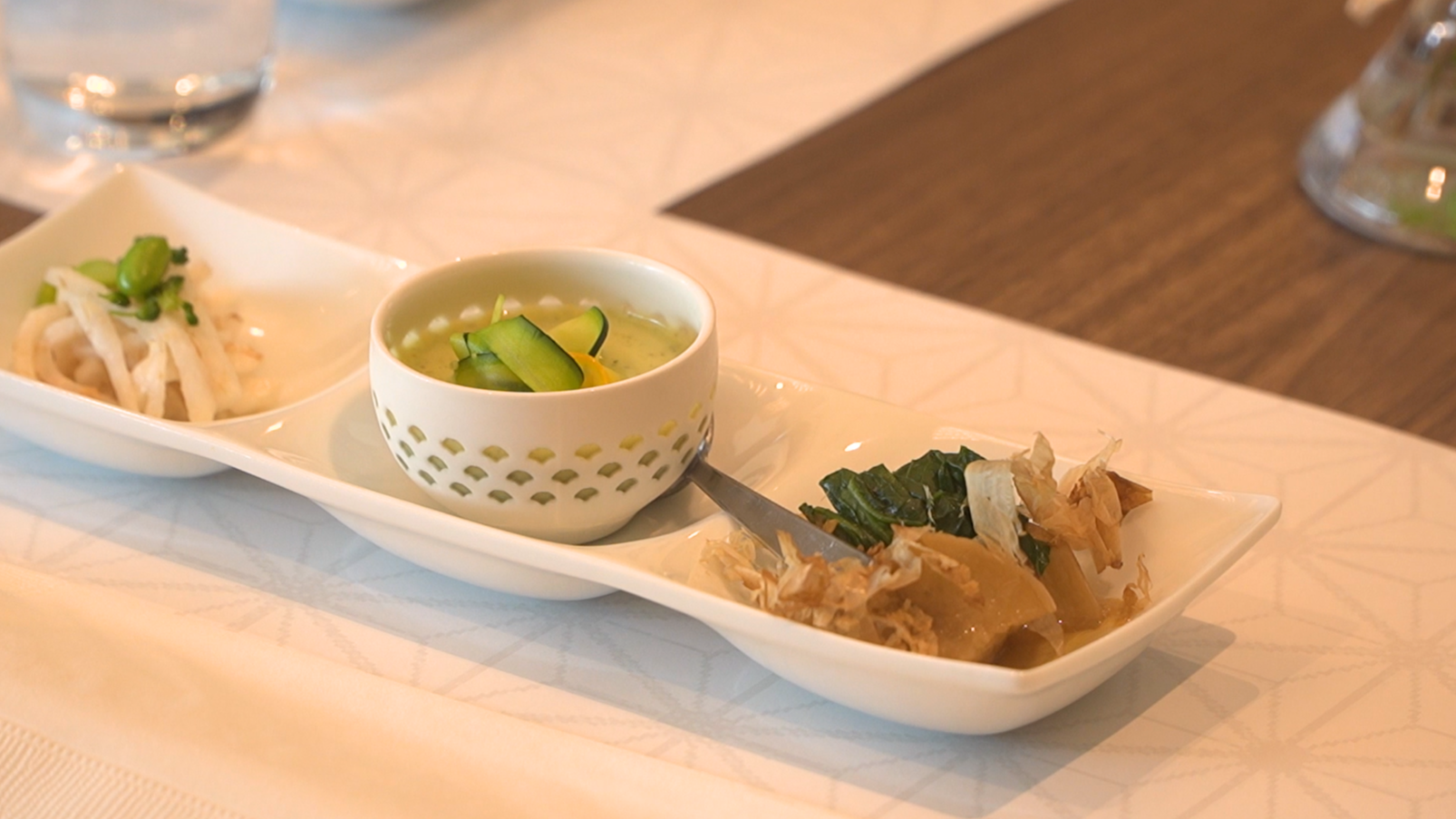 ホテル1階のレストラン「丁字屋 KASHIWA-NO-HA」にて、がんをもつ方向けの特別メニューを実食しました。