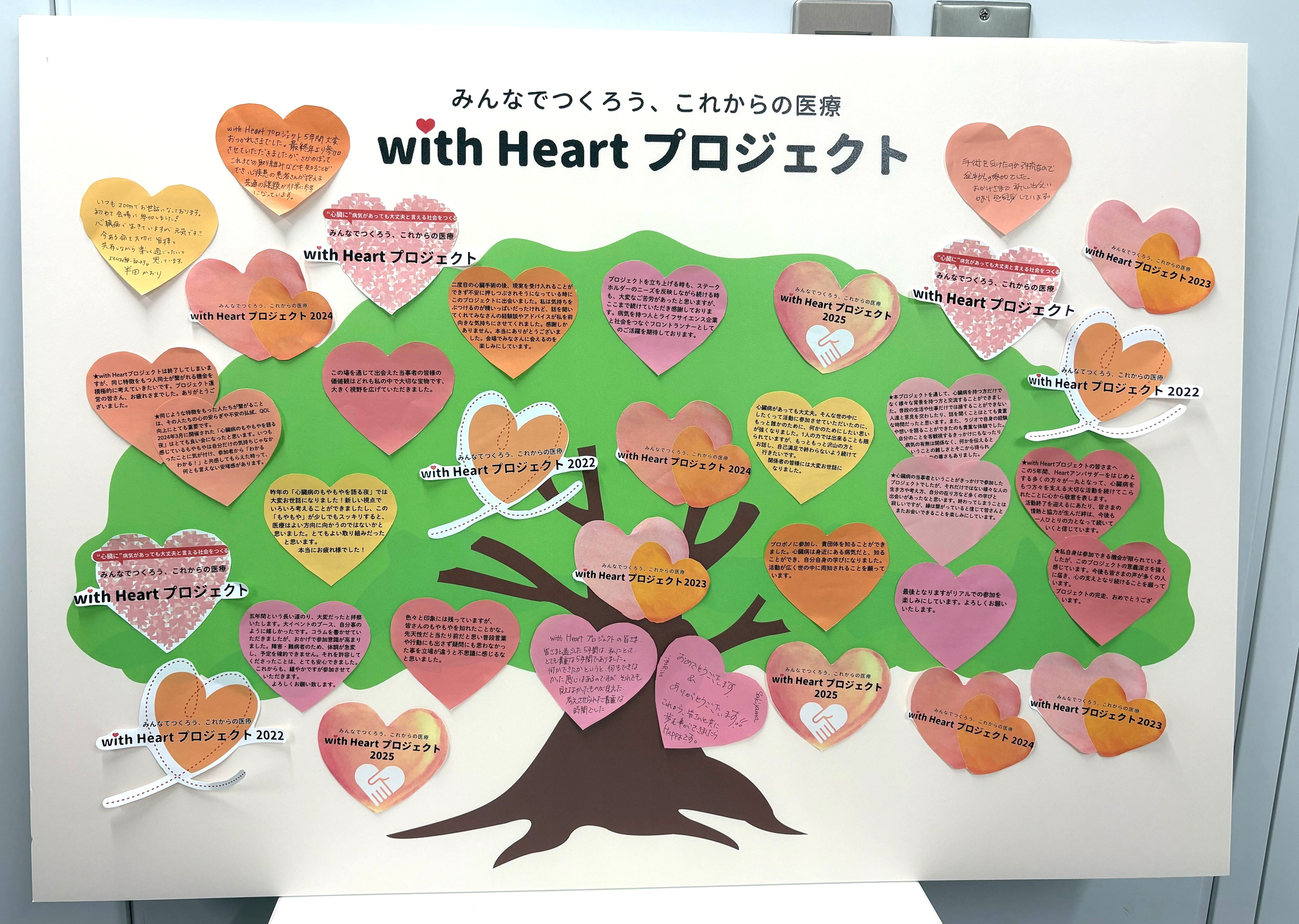 会場では、みなさまからお寄せいただいた本プロジェクトへのメッセージを「ハートのなる木」に掲示いたしました。温かいメッセージをお寄せいただき、ありがとうございました。
