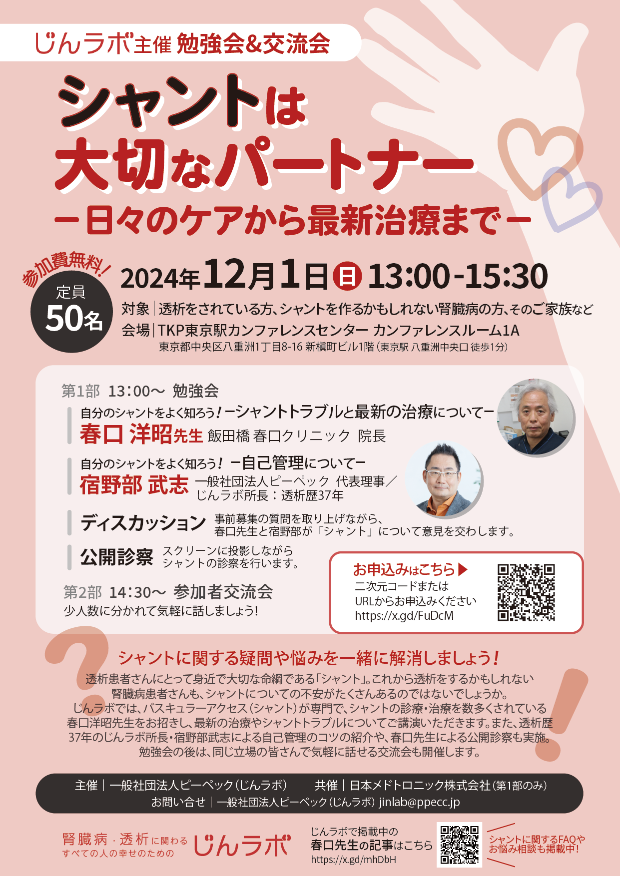 【終了】12/1(日)じんラボ主催「シャントは大切なパートナー -日々のケアから最新治療まで-」を都内で開催します。